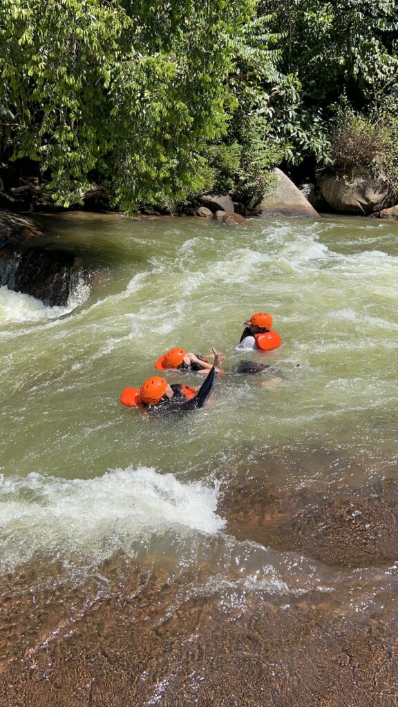 It was an amazing way to end the activity. Sometimes I floated on my back, sometimes on my front. When I looked up there was only the blue sky, the occasional treetops, and the birds flying. One of the guys from my raft kept teasing me by saying “hey, it’s really deep here, my feet can’t touch the bottom!” Haha. At some point, I felt someone pulling on my life jacket and when I flipped over, I saw he was pulling me away from the low-hanging tree branches which narrowly just avoided smacking/scratching me in the face. Quite a few times, I got so lost in thought, the others had to call out my name as I unwittingly floated under the tree branches which loomed into view at right about the same time.