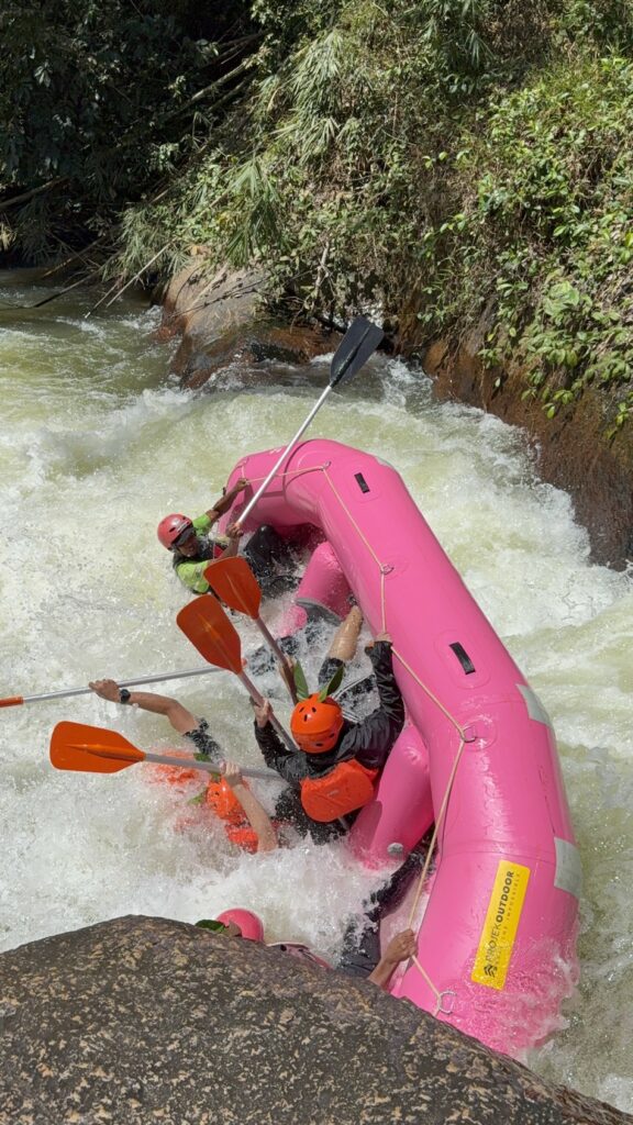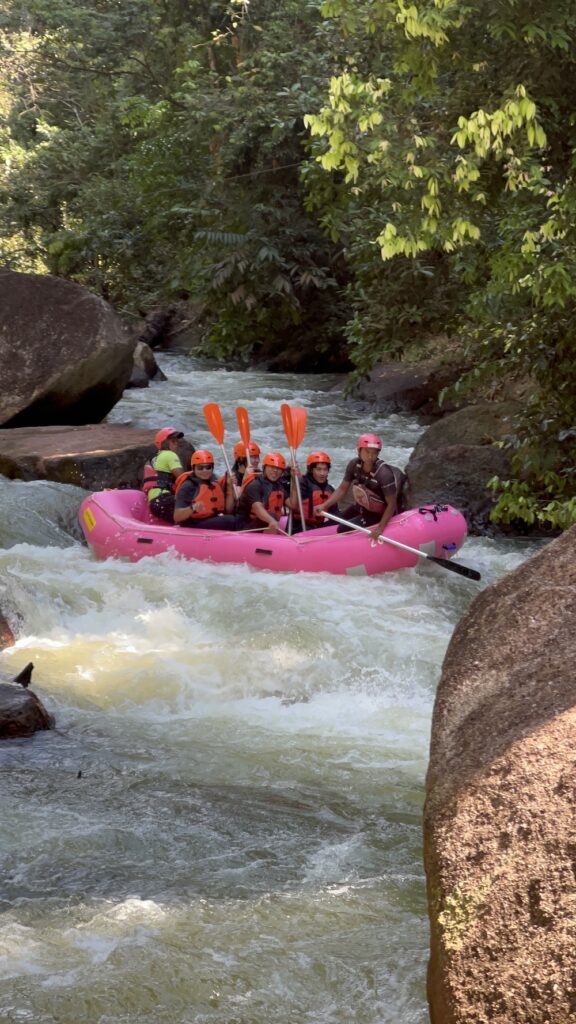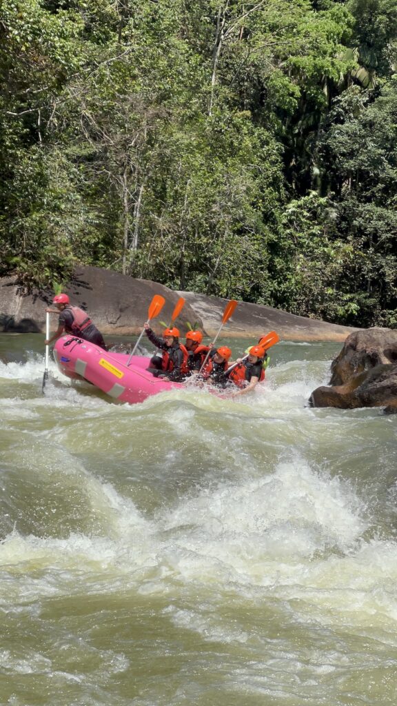 I was in West Malaysia last week on holiday, and my writing will be pretty rough but I just want to write all this down sooner to preserve the experience as best as I can, because I’m the type of person who forgets where I park my car. One of the things I was looking forward to the most on my schedule was white water rafting. Before the trip, I was looking for something exciting to add to my itinerary and it came up. I looked at it for a while and thought, why not? Look at the boats, they’re fuchsia pink, I love them, how cute are they!? And everyone sure looks like they’re having fun. The subject of rafting caught my interest there and then and I started doing some reading to weigh the risks. It seemed like just the right amount of wild, enough to shake things up but not so wild that there was a legitimate risk of cardiac arrest midway (like during skydiving maybe, because I’m scared of heights).